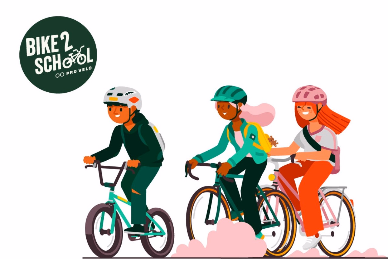 Die Aktion bike2school von Pro Velo Schweiz soll Schülerinnen und Schüler zwischen 10 und 20 Jahren zum Velofahren motivieren. Während der Aktion fahren die Kinder und Jugendlichen so oft wie möglich mit dem Velo zur Schule. Die Klassen nehmen während vier frei wählbaren Wochen innerhalb des Schuljahres teil. Eigene Begleitaktionen rund um die Themen Gesundheit, Ernährung, Umwelt, Mobilität oder Verkehrssicherheit bringen zusätzlichen Schwung und steigern die Gewinnchancen.
