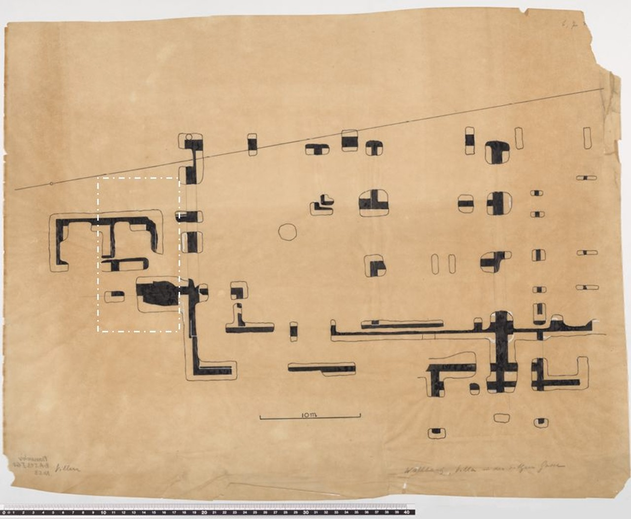 Tatsächlich konnten die Mitarbeitenden der Kantonsarchäologie nach dem Abtrag des Oberbodens Stein- und Kalkmörtelkonzentrationen feststellen, die sich als Mauerkronen eines römischen Steinbaus herausstellten. Die auf einer Fläche von rund 8 x 12 Meter beobachteten Mauerbefunde zeigen einen verschachtelten, kleinräumigen Gebäudetrakt. Gewisse Mauern weisen als statische Massnahmen Verstrebungen auf, was auf das Abtragen grösserer Auflasten hindeutet. Mehrere Ziegelplatten von Hypokaustanlagen (Bodenheizung) sowie zahlreichen Fragmente von Ziegelschrotmörtel deuten zusammen mit der erkannten Raumdisposition auf einen Badetrakt hin.