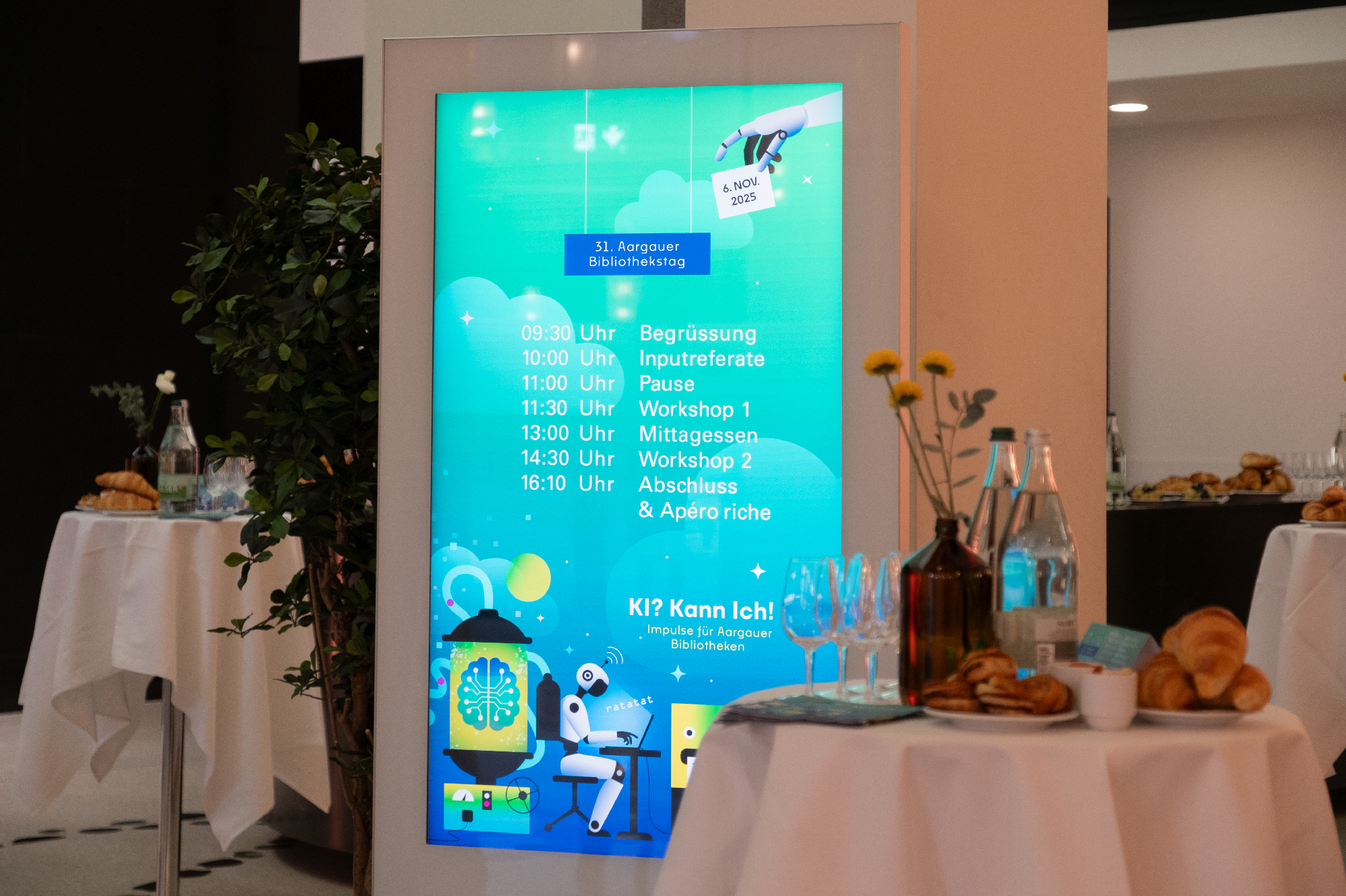 Der 31. Aargauer Bibliothekstag im Kultur- und Kongresshaus Aarau (KuK) stand ganz im Zeichen der Künstlichen Intelligenz. Unter dem Motto "KI? Kann ich! – Impulse für Aargauer Bibliotheken" beschäftigten sich rund 150 Bibliotheksmitarbeitende aus dem ganzen Kanton mit einem Thema, das ihren Berufsalltag bereits heute prägt und in den kommenden Jahren weiter an Bedeutung gewinnen wird. Dass die Tagung vollständig ausgebucht war, zeigt eindrücklich, wie stark das Thema KI die Bibliotheken bewegt.