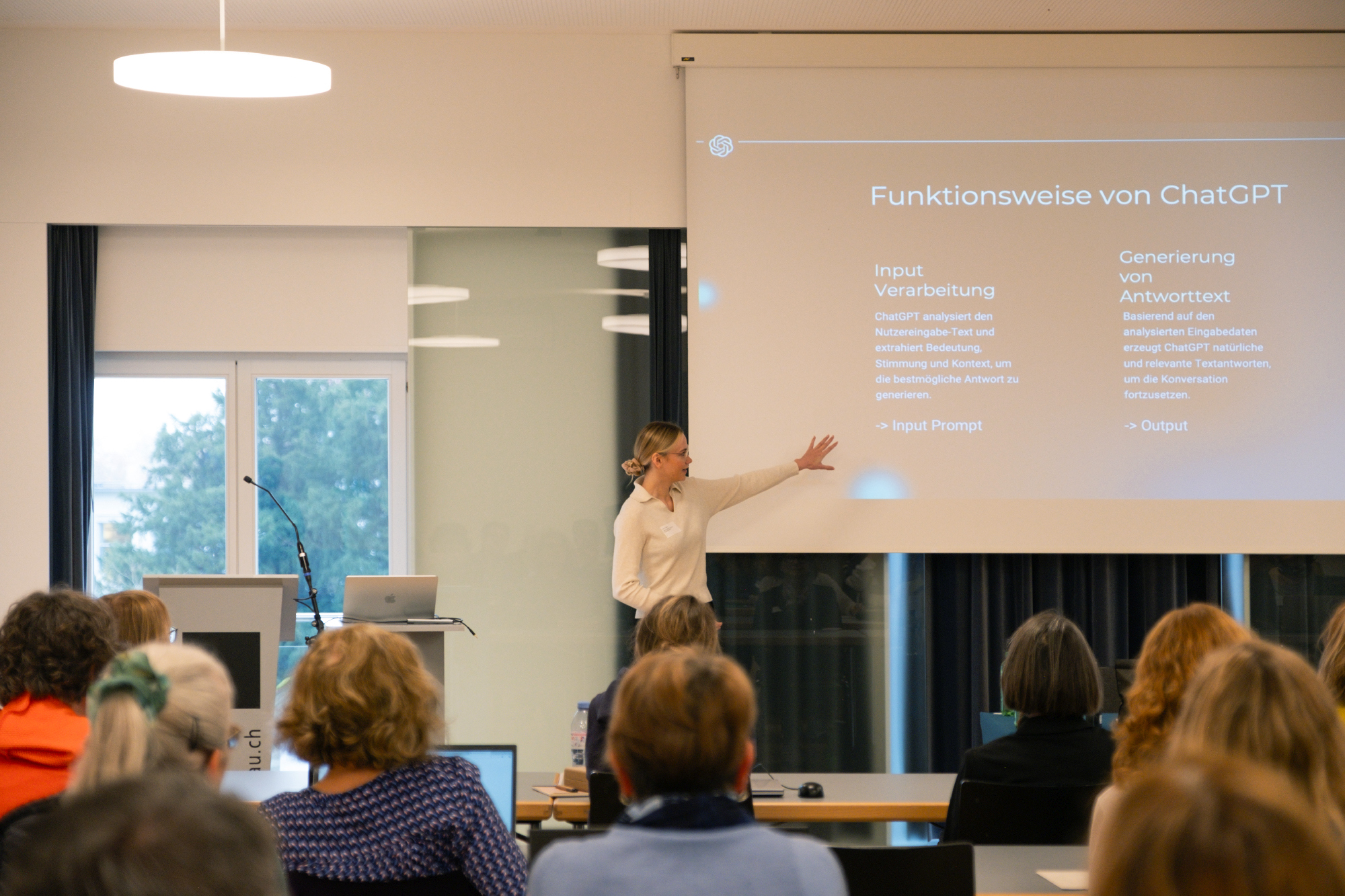 Durch das Programm führte in bewährter Weise die Bibliotheksbeauftragte Andrea Faedi – in diesem Jahr jedoch mit einer überraschenden Unterstützung: ChatGPT mischte sich als virtueller Co-Moderator immer wieder ein, gab charmante Hinweise zum Zeitplan und sorgte für unerwartete, heitere Momente.