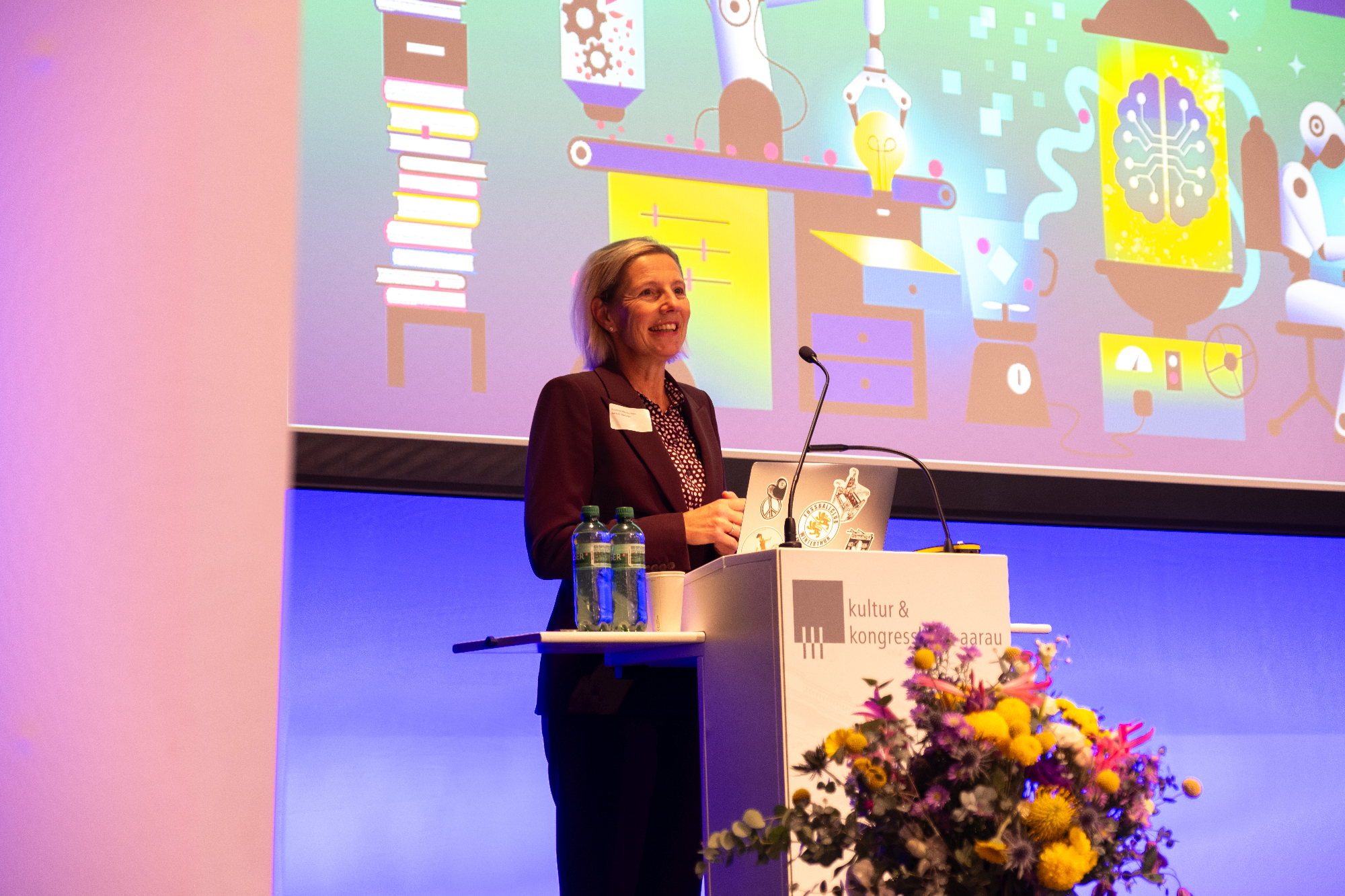 Nach der herzlichen Begrüssung durch Daniel Schwane, Leiter Bibliothek und Archiv Aargau, würdigte Suzanne Marclay-Merz, Aarauer Stadträtin, in ihrem Grusswort die zentrale Rolle der Bibliotheken, die mit ihrem offenen und niederschwelligen Zugang Menschen aller Generationen sicher und selbstbestimmt in die digitale Zukunft begleiten.