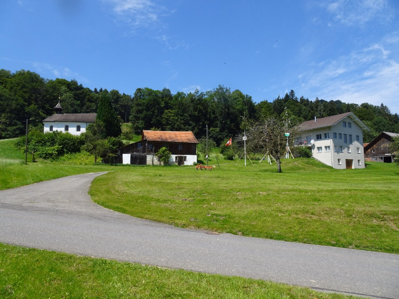 Zurück nach Wolhusen radle ich am Höhenweg, am Weg steht eine Gedenkstätte. Zur Kurhauszeit stand dort eine Kapelle. Auch diese ist jedoch abgebrannt. Der russig-schwarze Bischof Ulrich schaut auf seine Schafe, dann radelt es sich genial abwärts nach Wolhusen.