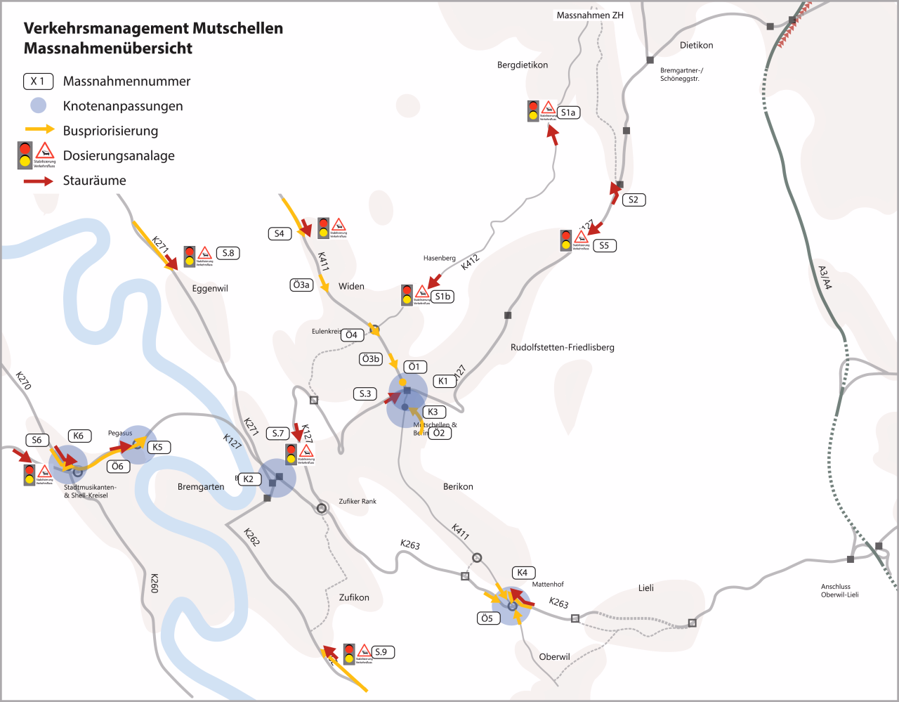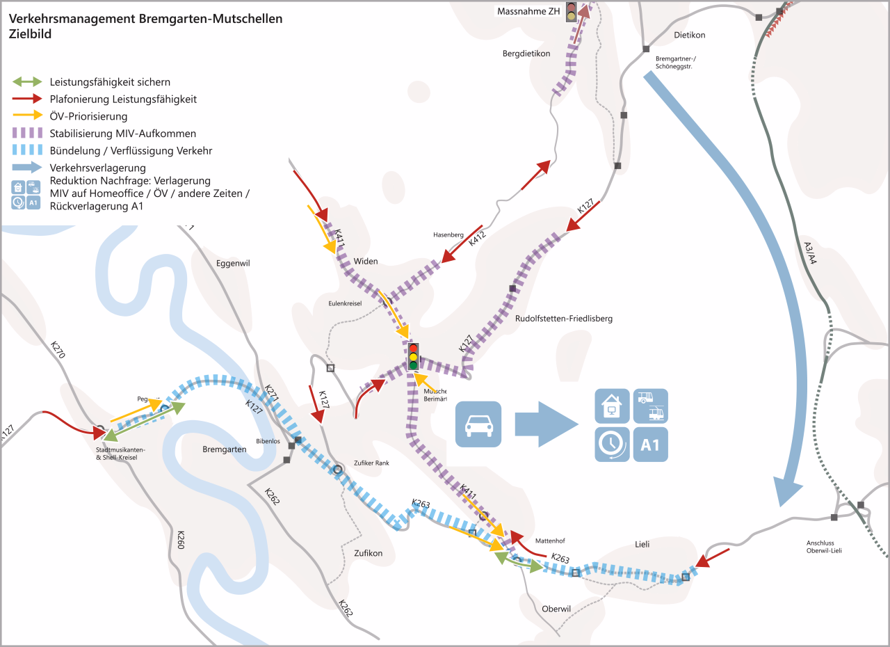 Im urbanen Entwicklungsraum der Region Mutschellen-Bremgarten ist auch in Zukunft mit einem Bevölkerungs- und Arbeitsplatzwachstum zu rechnen. Um die Zuverlässigkeit des öffentlichen Verkehrs und Funktionsfähigkeit des übergeordneten Strassennetzes weiterhin sicherzustellen, werden Massnahmen umgesetzt, die die Leistungsfähigkeit des Verkehrssystems optimieren.