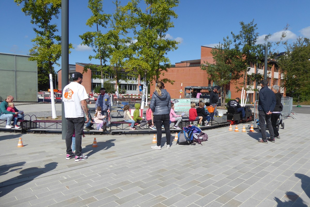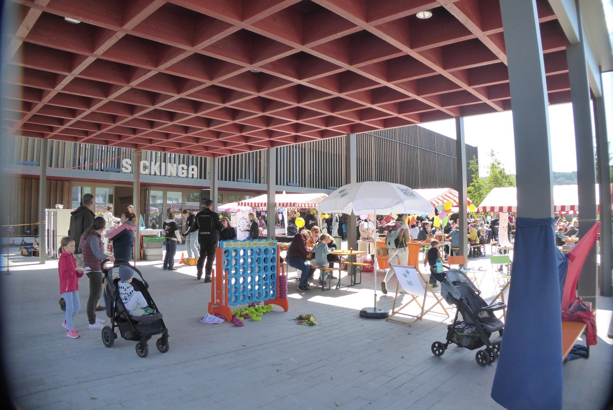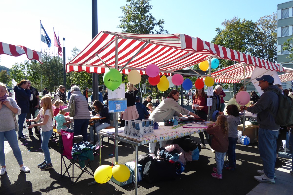 Auf dem Platz vor der Sickinga Halle ist ein buntes und reges Treiben anzutreffen. Es gibt diverse Marktstände, an denen sich Angebote für Kinder im Frühbereich präsentieren. Auch gibt es Kinderschminken, eine Bastelecke, ein Parcours der Bauernhof-Spielgruppe und Essen und Trinken aus der Schweiz, Indien und Indonesien. Der Platz füllt sich rasch mit vielen Besuchenden, von jung bis alt. Ein Highlight ist das Dampfzügli, das zum Mitfahren einlädt. Auch für die älteren Kinder gibt es Bewegungsangebote, wie zum Beispiel ein Menschenkicker. Ein weiteres Highlight ist die Stempelkarte: wer alle Angebote an den Marktständen besucht hat – von der Dorfbibliothek, über die Tagesstrukturen, der Vernetzerinnen bis zum Chinderhus YoYo und dem Familienverein – dem lockt ein Give-Away Gschänkli.