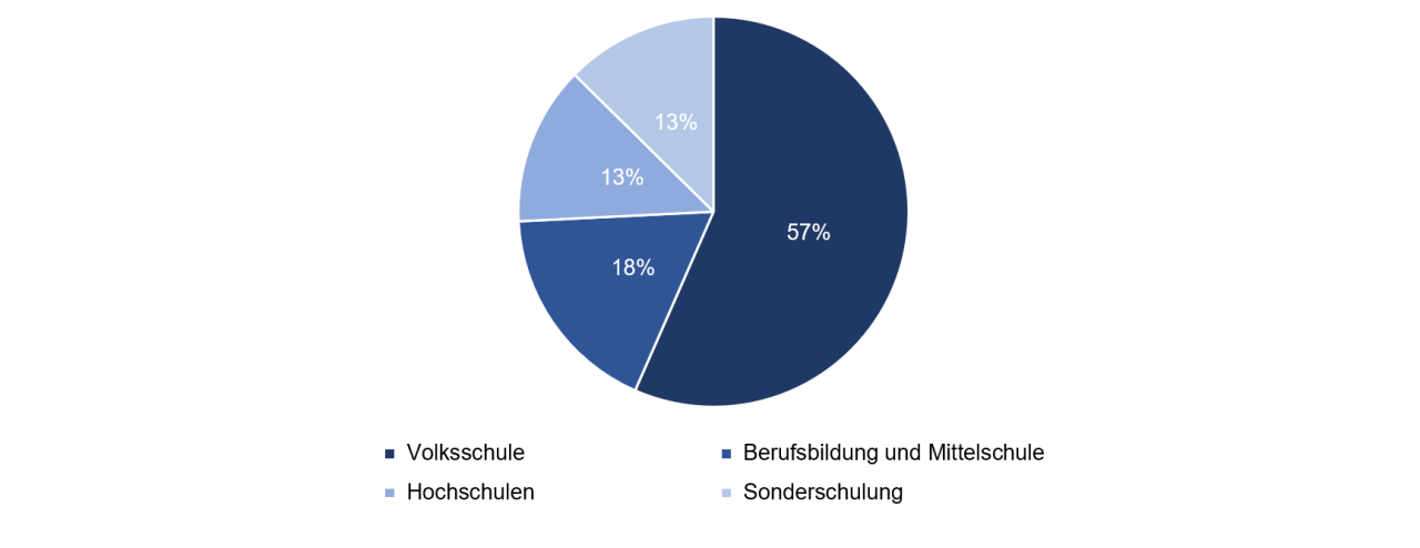 Wächst die Bevölkerung, steigen also auch die Bildungsausgaben. Abgesehen von den laufenden Aufwänden, von denen ein Grossteil im Bereich des Personalaufwands der Lehrpersonen anfällt, stehen zyklische Investitionen in die Bildungsbauten an. So müssen beispielsweise bestehende Schulhäuser und Sporthallen instandgehalten und an wandelnde Bedürfnisse angepasst werden. Um dem steigenden Bedarf an Schulraum zu begegnen, müssen aber auch die bestehenden Bildungsbauten vorausschauend erweitert und punktuell durch neue Bauten ergänzt werden.