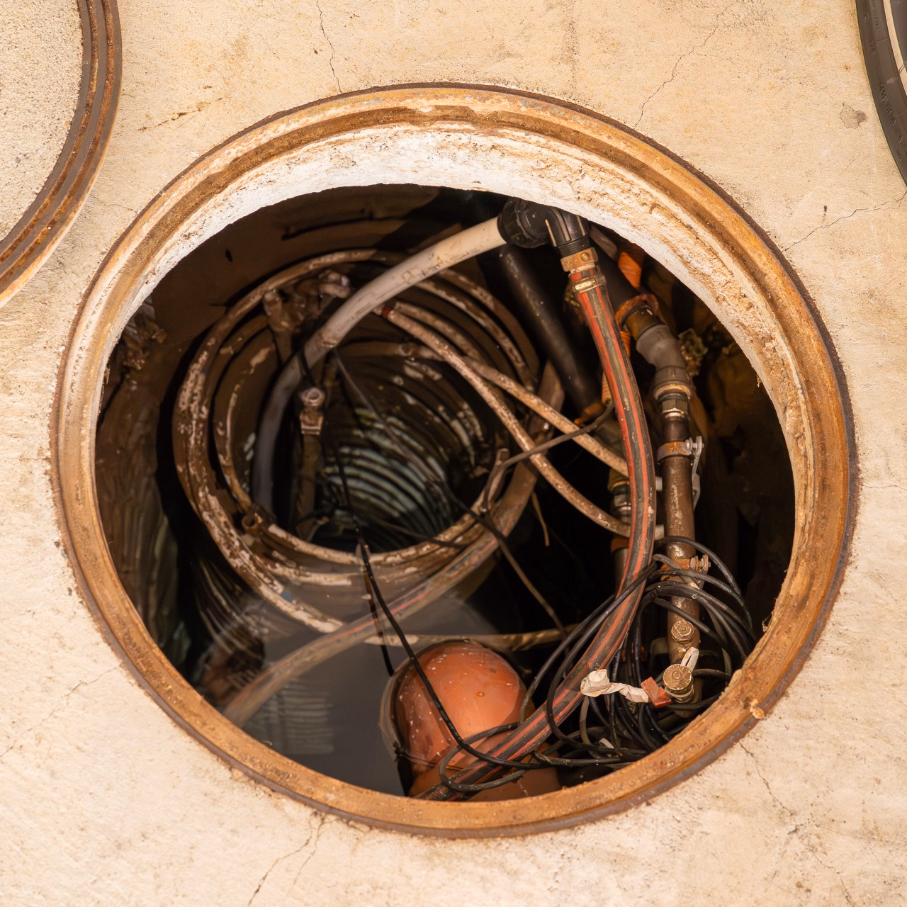 In der Garage befinden sich zwei unscheinbare Schätze: eine 10'000-Liter-Regenwasserzisterne und eine 2'000-Liter-Quellwasserzisterne. Eine Zisterne ist nichts anderes als ein grosser unterirdischer Wassertank, in dem Regen- oder Quellwasser gesammelt und gespeichert wird, bis es im Haus oder Garten genutzt wird.