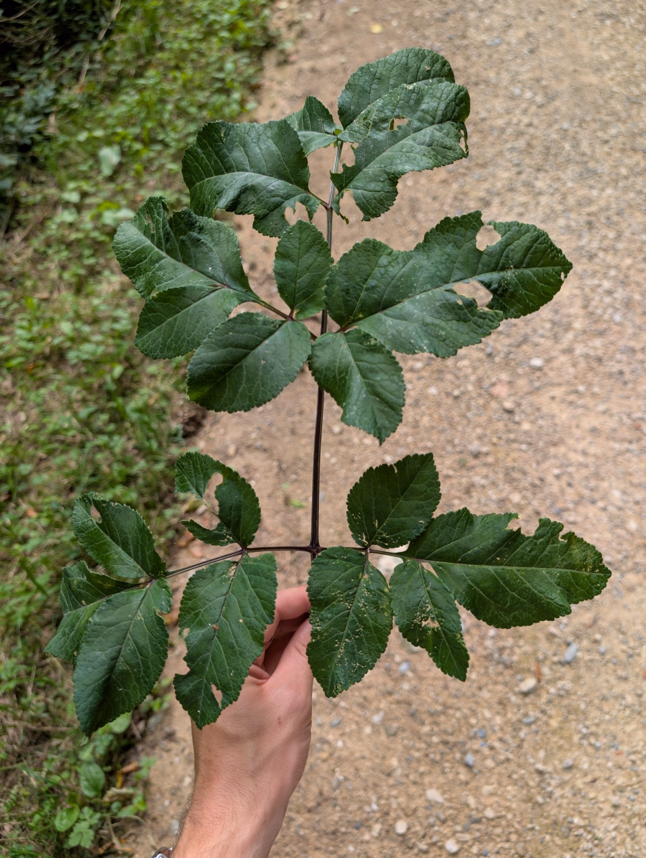 | Blätter | Gross (bis zu 3 m lang) und tief in 3–5 Abschnitte geteilt, mit gezähntem Rand |