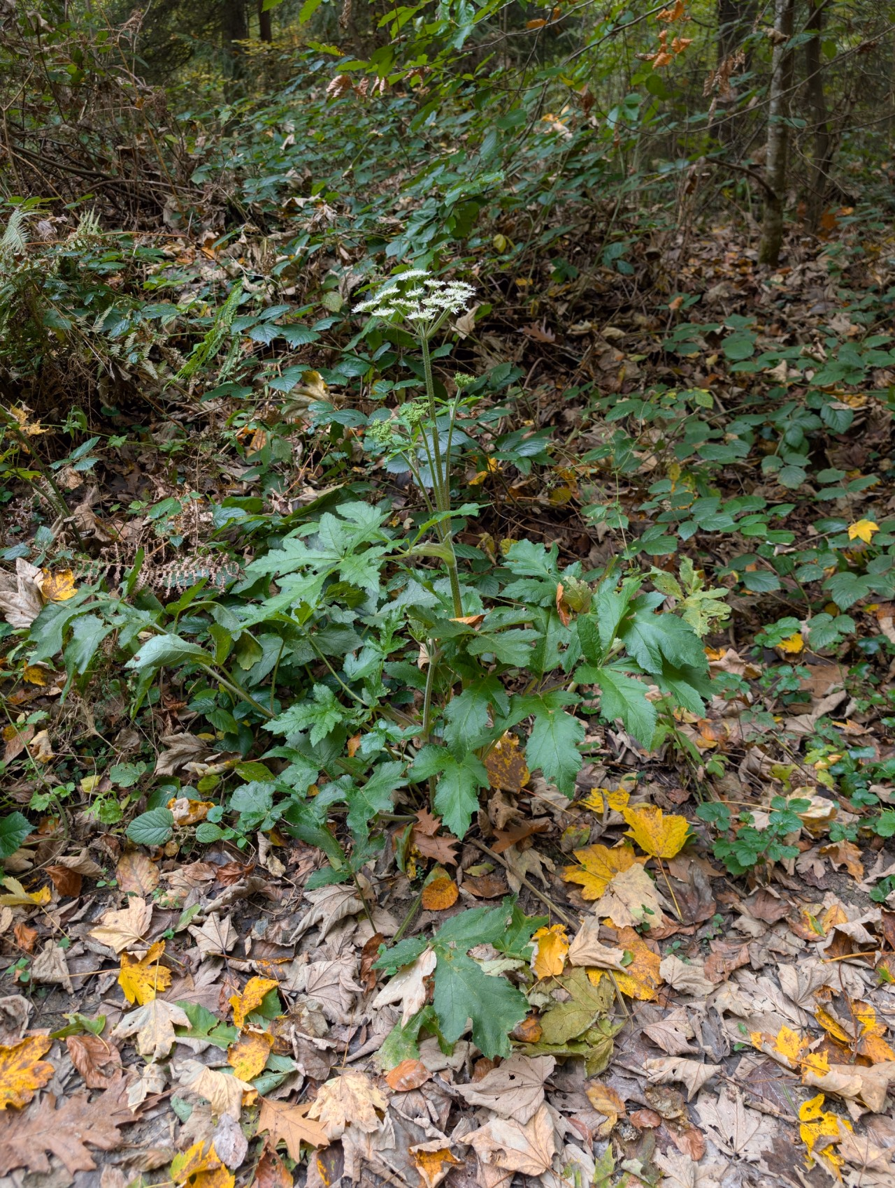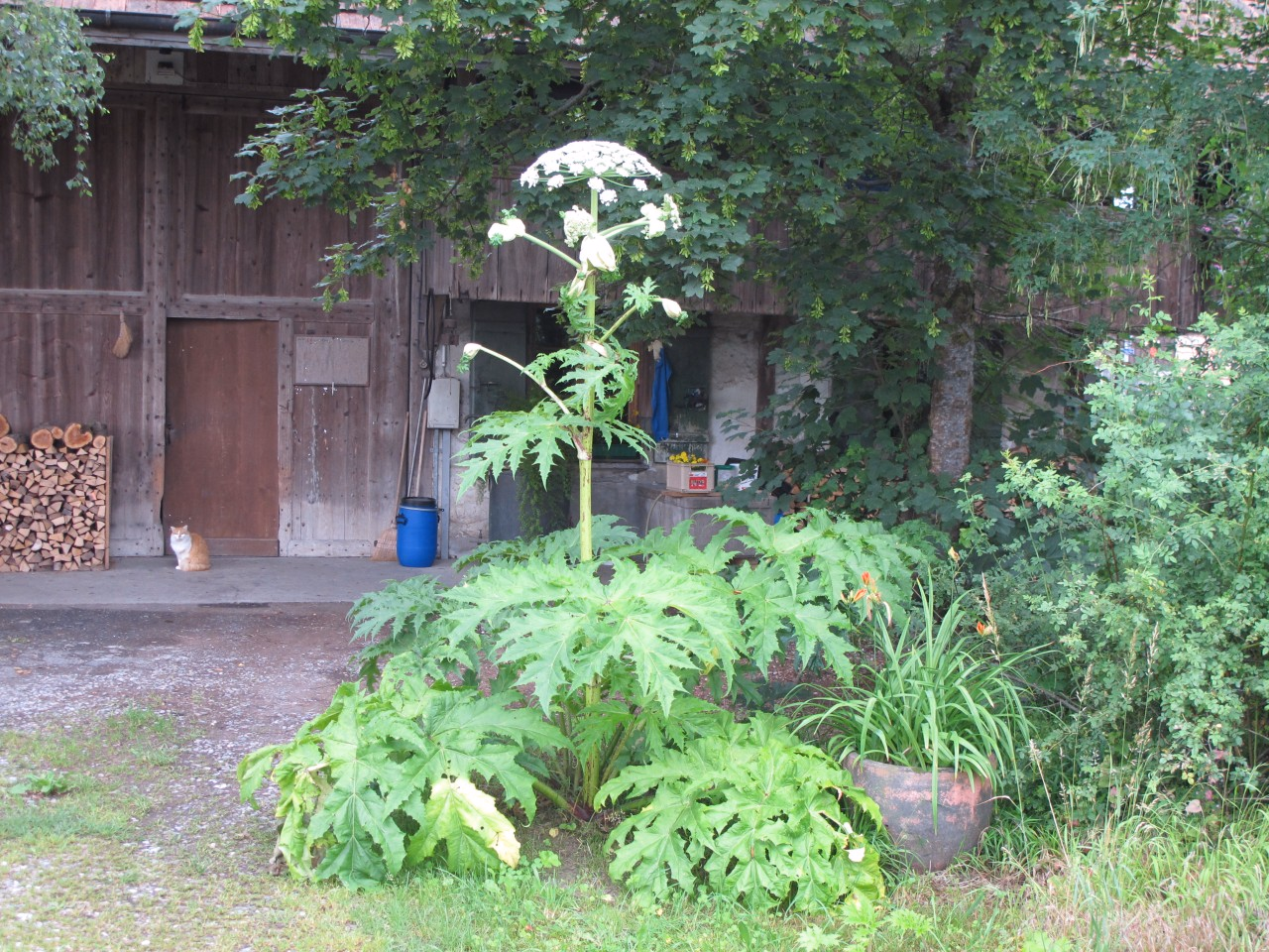 Der Riesenbärenklau ist ein invasiver Neophyt aus dem Kaukasus und verbreitet sich in nährstoffreichen, feuchten Wäldern, an Uferzonen und in Pärken. Der Saft der Pflanze kann starke Verbrennungen verursachen. Funde müssen der Koordinationsstelle Neobiota gemeldet werden.