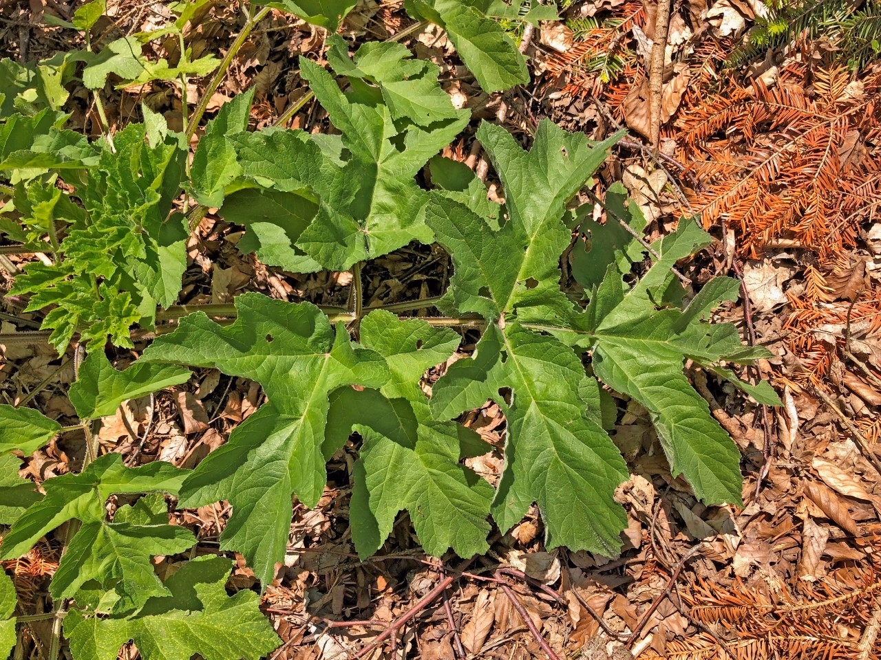 Die Blätter des Riesenbärenklaus können (inklusive Blattstiel) bis zu 3 m lang werden. Sie sind jeweils tief in 3–5 wenig tief fiederteilige Abschnitte geteilt. © Erwin Jörg