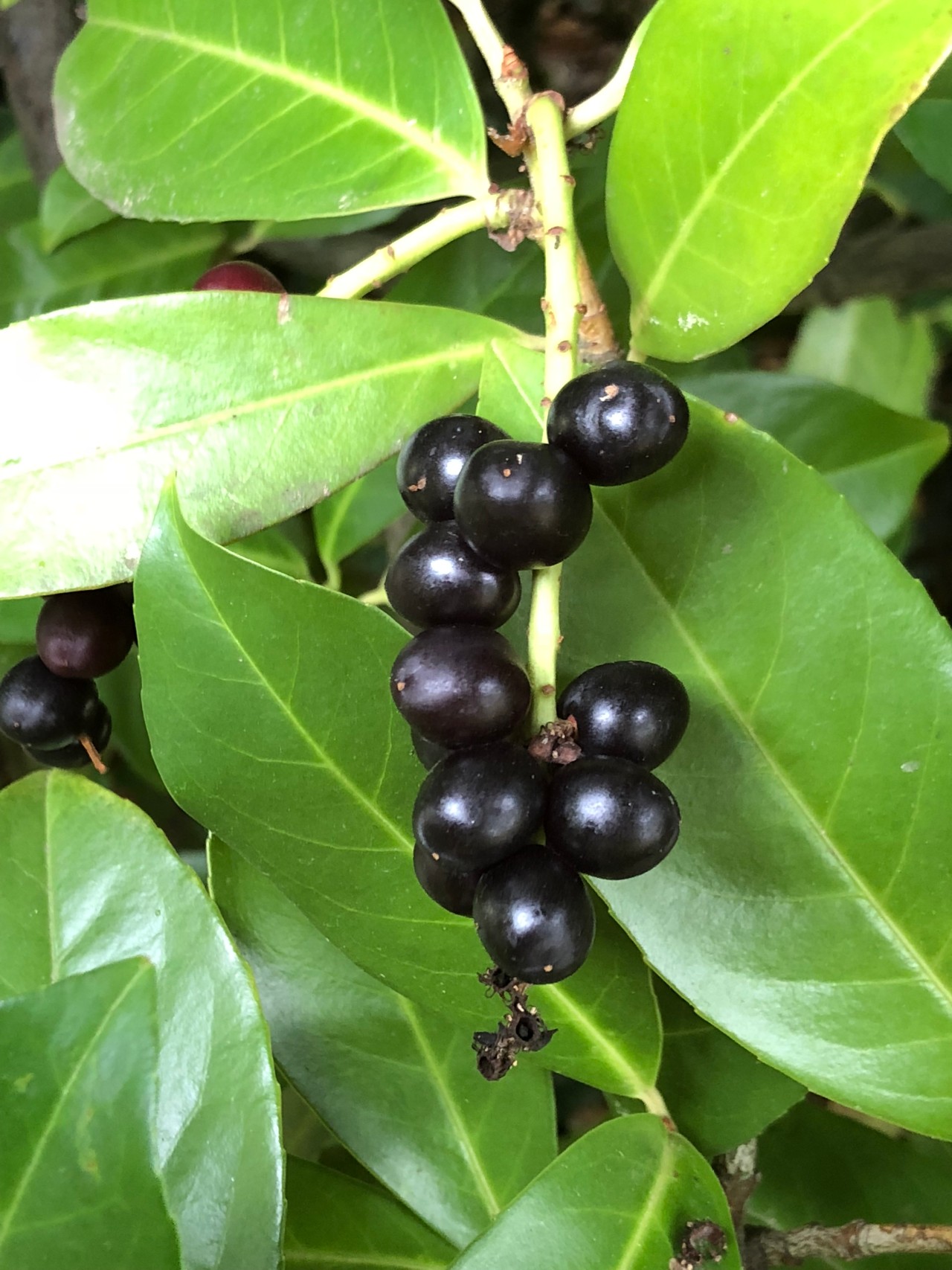 Der Kirschlorbeer ist ein invasiver Neophyt aus Südwestasien und verbreitet sich vor allem in Gärten, an Waldrändern und im Wald.