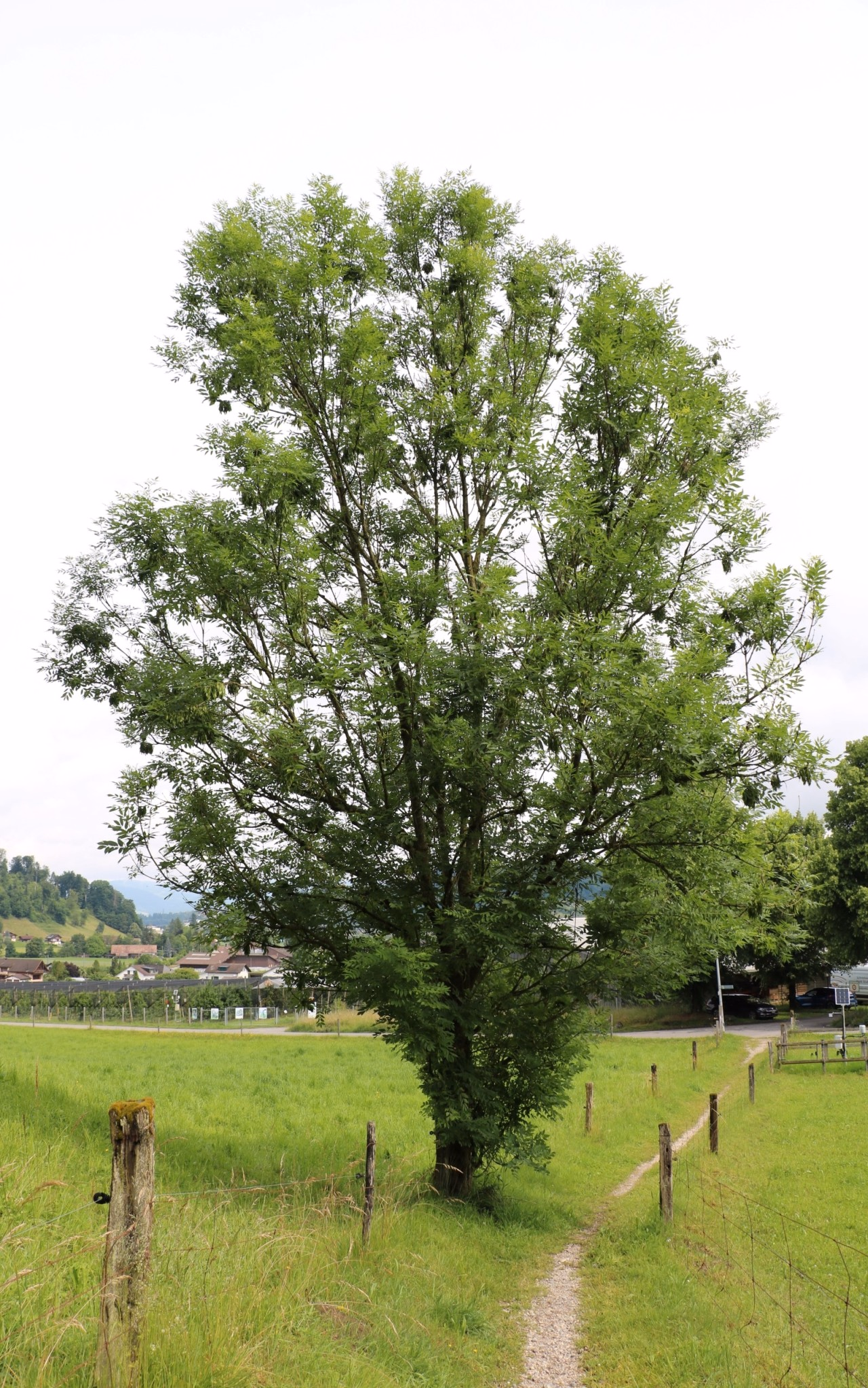 Ein Eschenbaum der auf einer Wiese wächst. Dies ist nicht unbedingt ein typischer Standort für diese Art. Normalerweise findet man sie in feuchten Wäldern. © Kanton Aargau