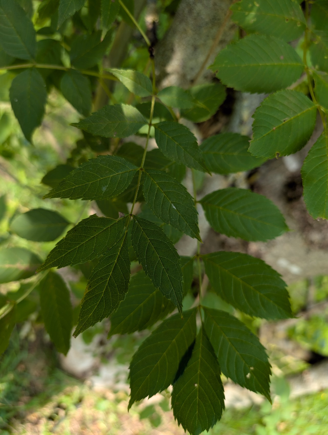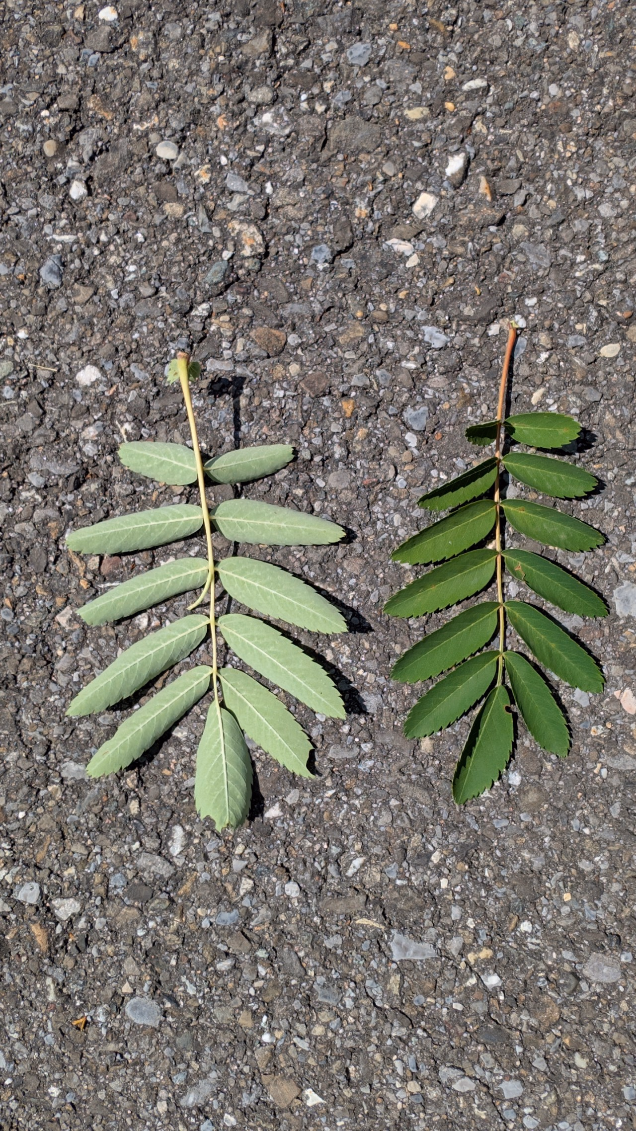 Blätter | Wechselständig, unpaarig gefiedert, mit lanzettlichen Teilblättern, welche einen gezähnten Rand aufweisen, im Herbst gelb, orange oder rot gefärbt |