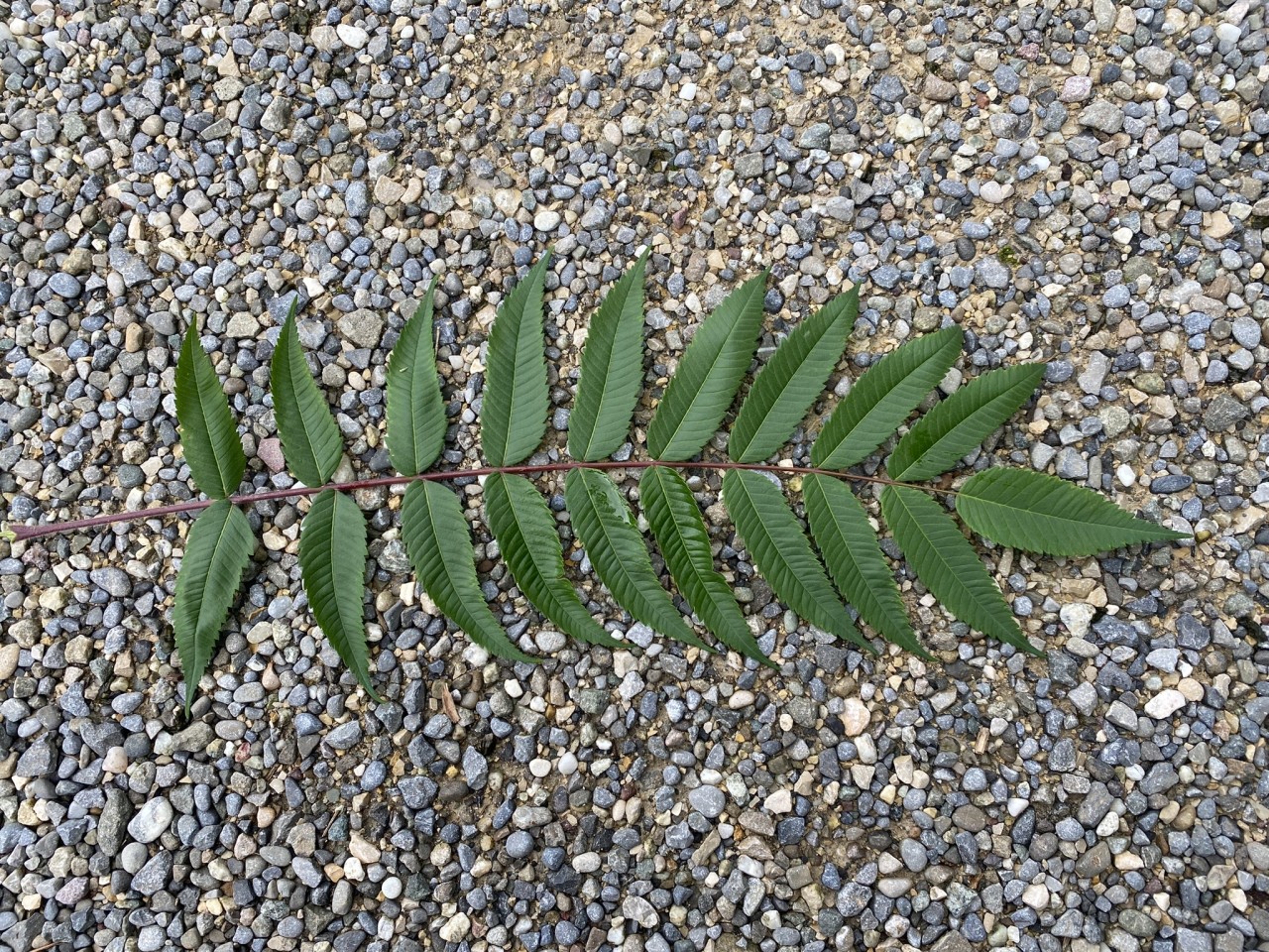 Die Blätter des Essigbaums sind relativ gross und unpaarig gefiedert. © Kanton Aargau