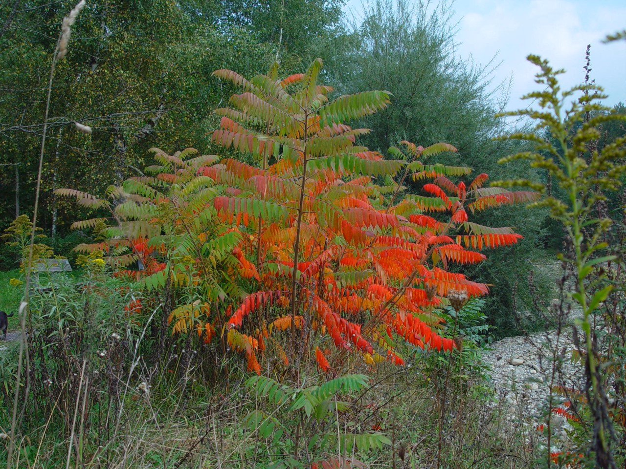 Im Herbst erkennt man den Essigbaum gut and den rot, gelb oder orange verfärbten Blättern. © Erwin Jörg