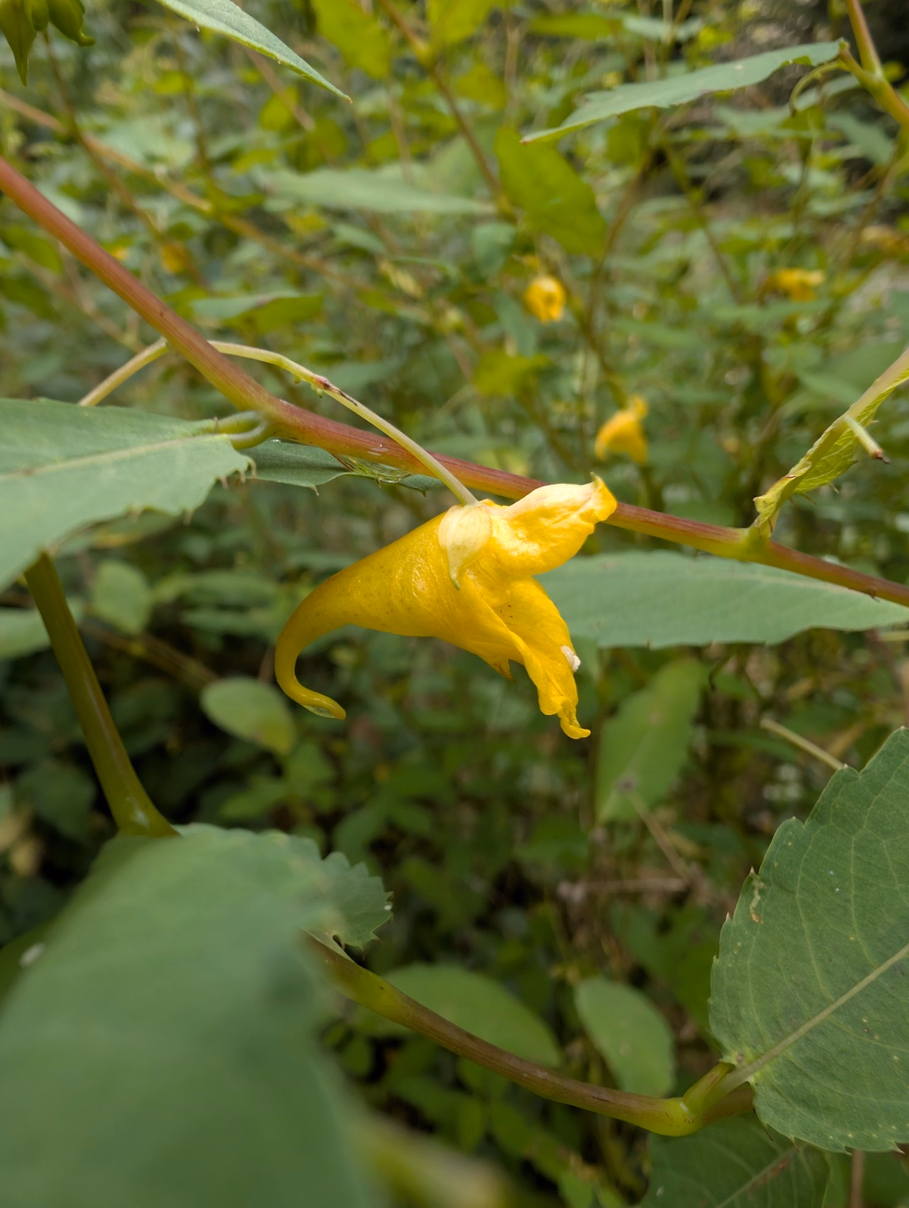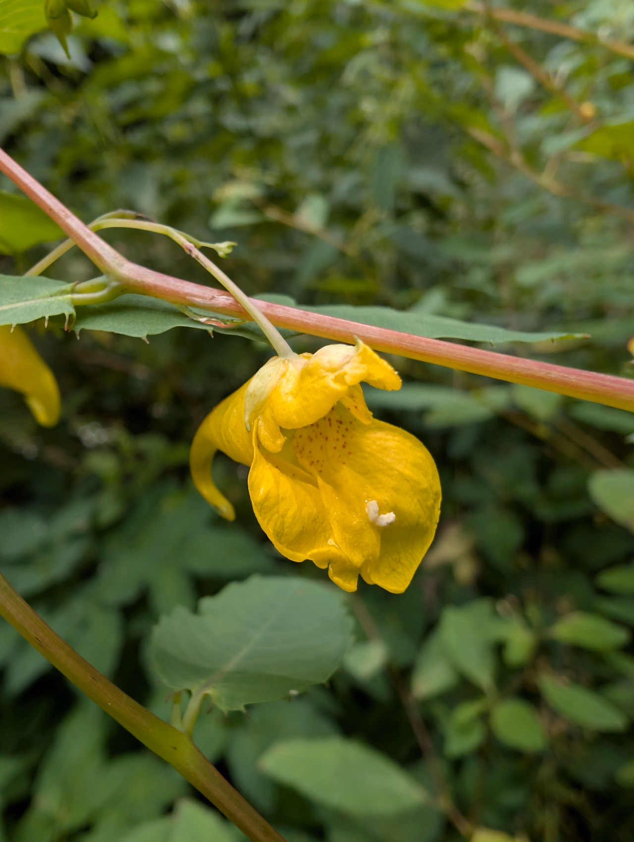 Das Waldspringkraut hat eine monosymmetrische, gelbe Blüte mit roten Saftmalen im Inneren. © Kanton Aargau