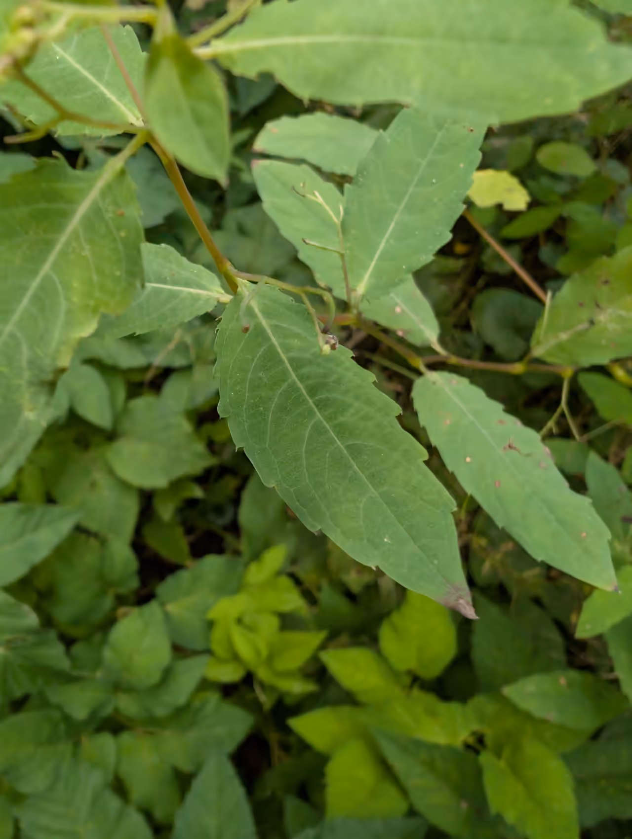 Die Blätter des Drüsigen Springkrauts sind lanzettlich mit einem gezähnten Rand. © Kanton Aargau